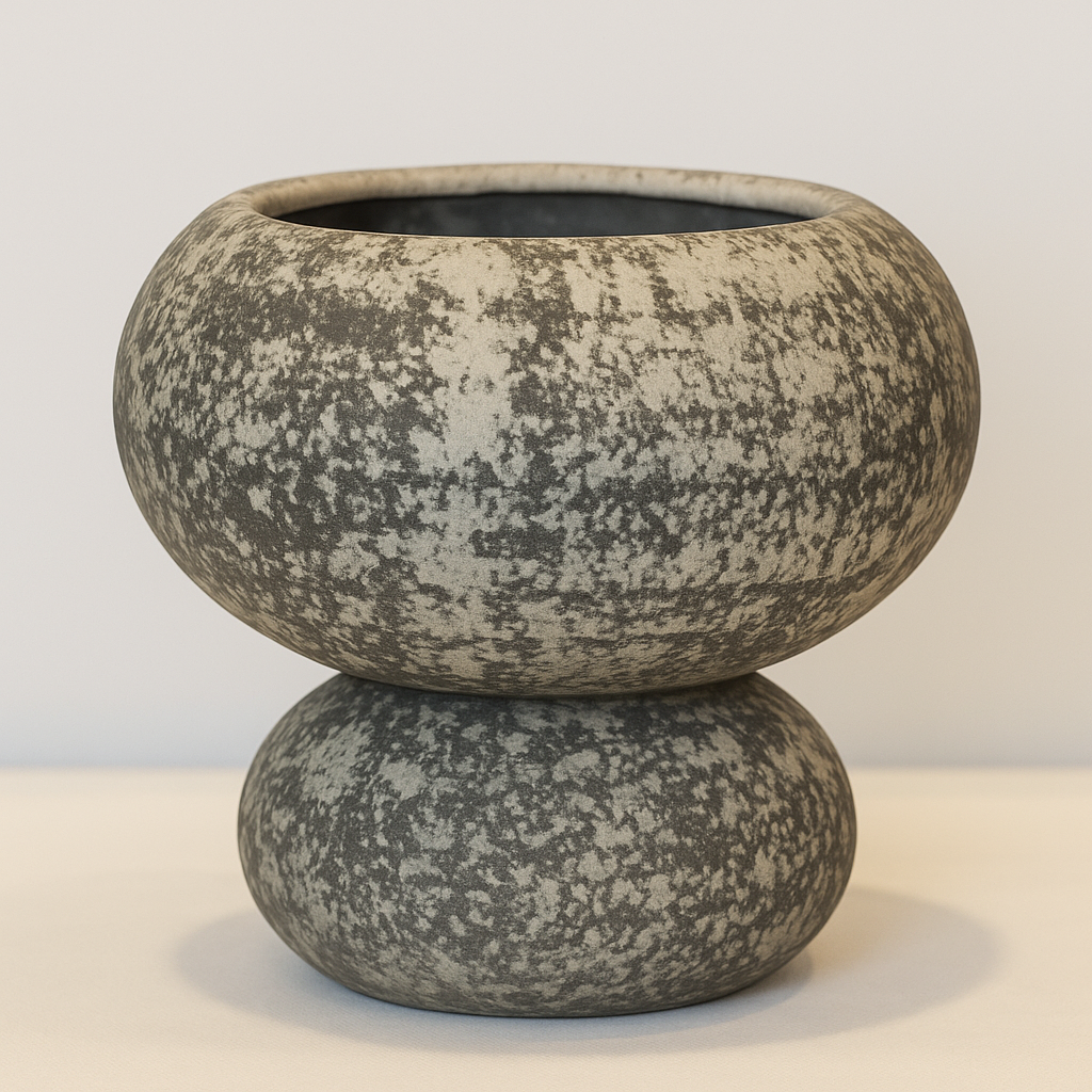 تحفة فنية تجمع بين البساطة والأناقة، بتصميم فريد من قطعتين متوازنتين ولمسة نهائية خشنة مستوحاة من الحجر الطبيعي. قطعة ديكورية مثالية لإضافة طابع فني مميز ولمسة من الهدوء الريفي العصري إلى مساحتك