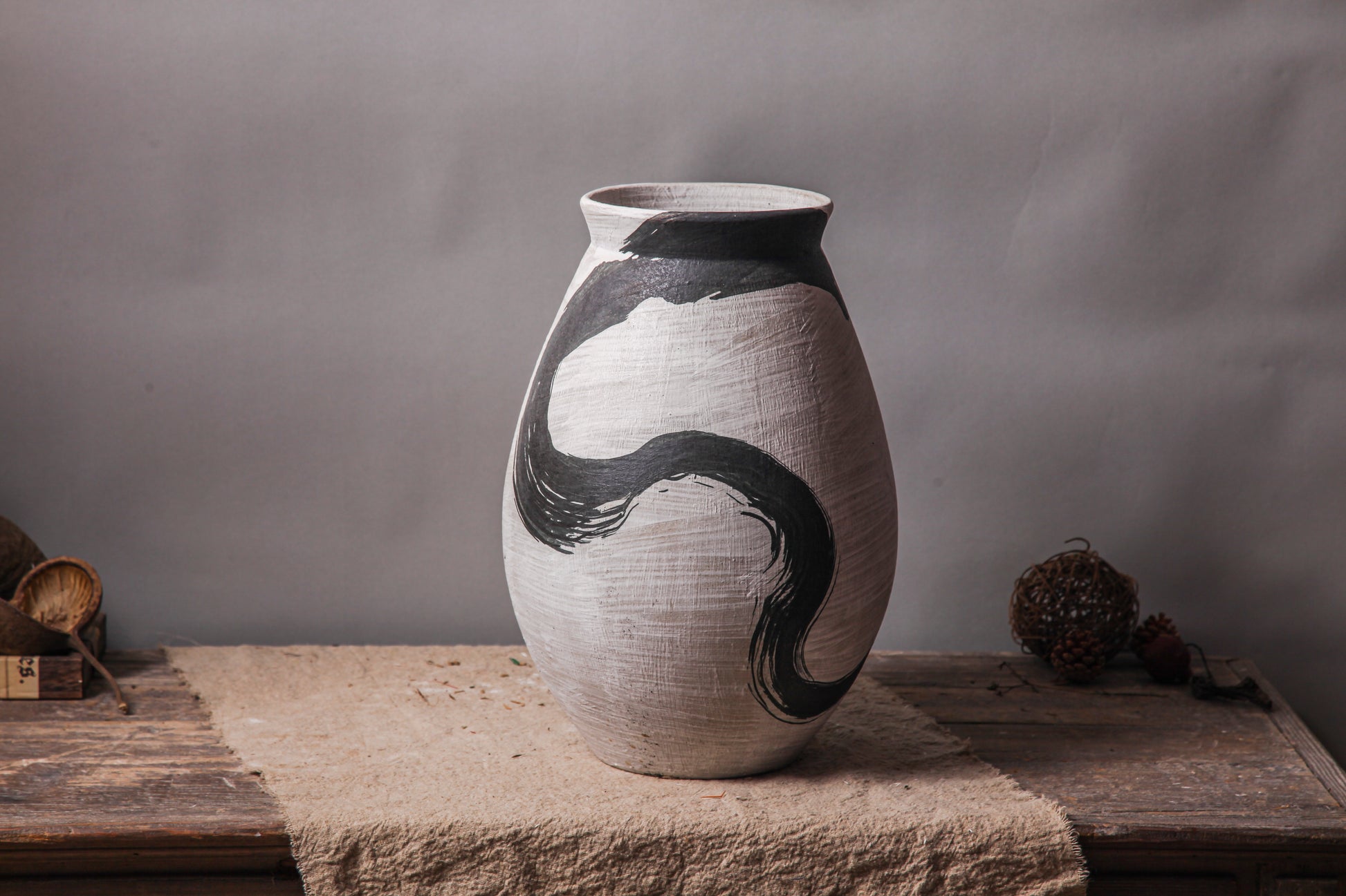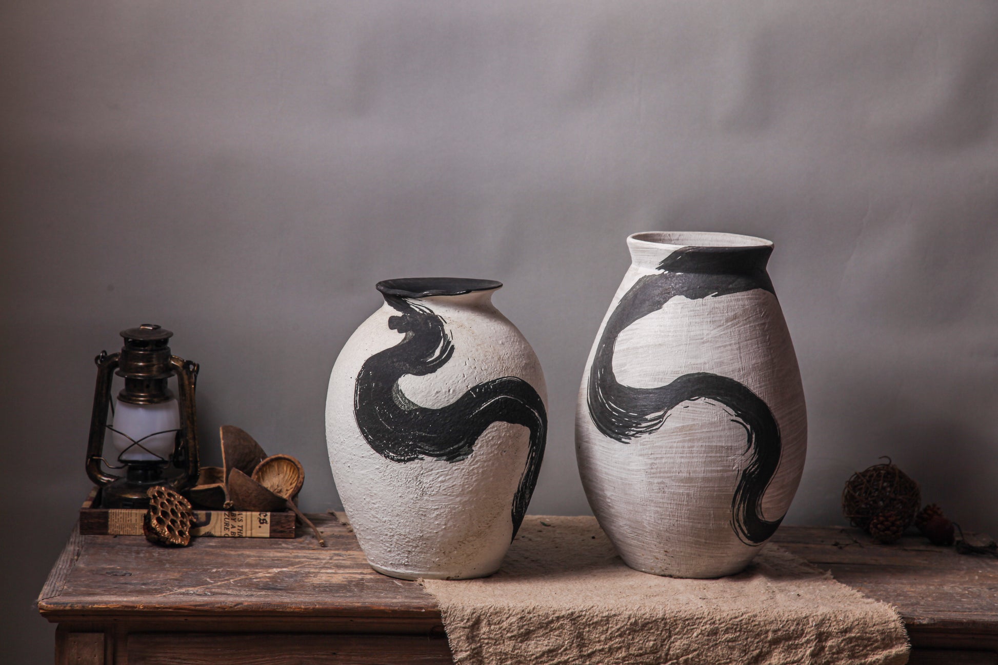 مزهرية سيراميك باللونين الأبيض والأسود- قطعيتن