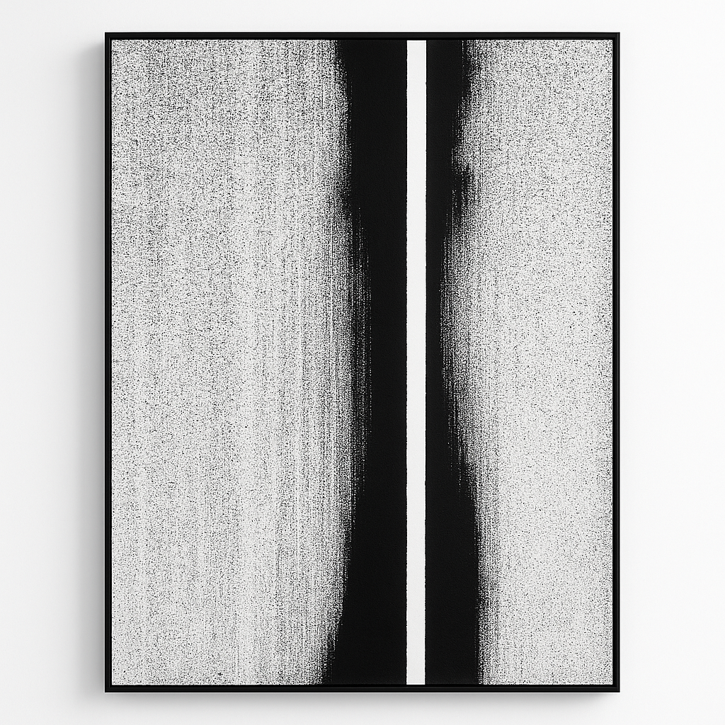 تجسد هذه اللوحة القوية بالأبيض والأسود العمق والتباين، مع خط عمودي يقطع المساحة ليخلق تركيزًا...