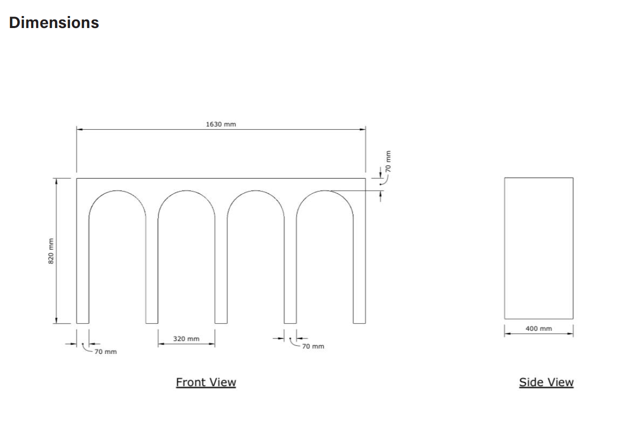 Console table: width 163 cm, depth 40 cm, height 82 cm
